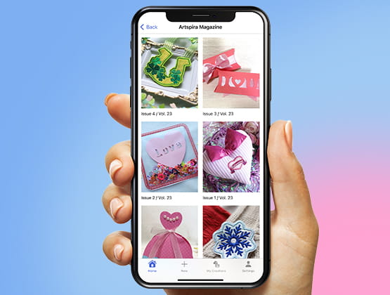 Artspira é o novo aplicativo de design para bordados e arquivos de corte. Edite e crie seus projetos facilmente e transfira suas criações para a sua máquina Brother por conexão sem fio (wi-fi).