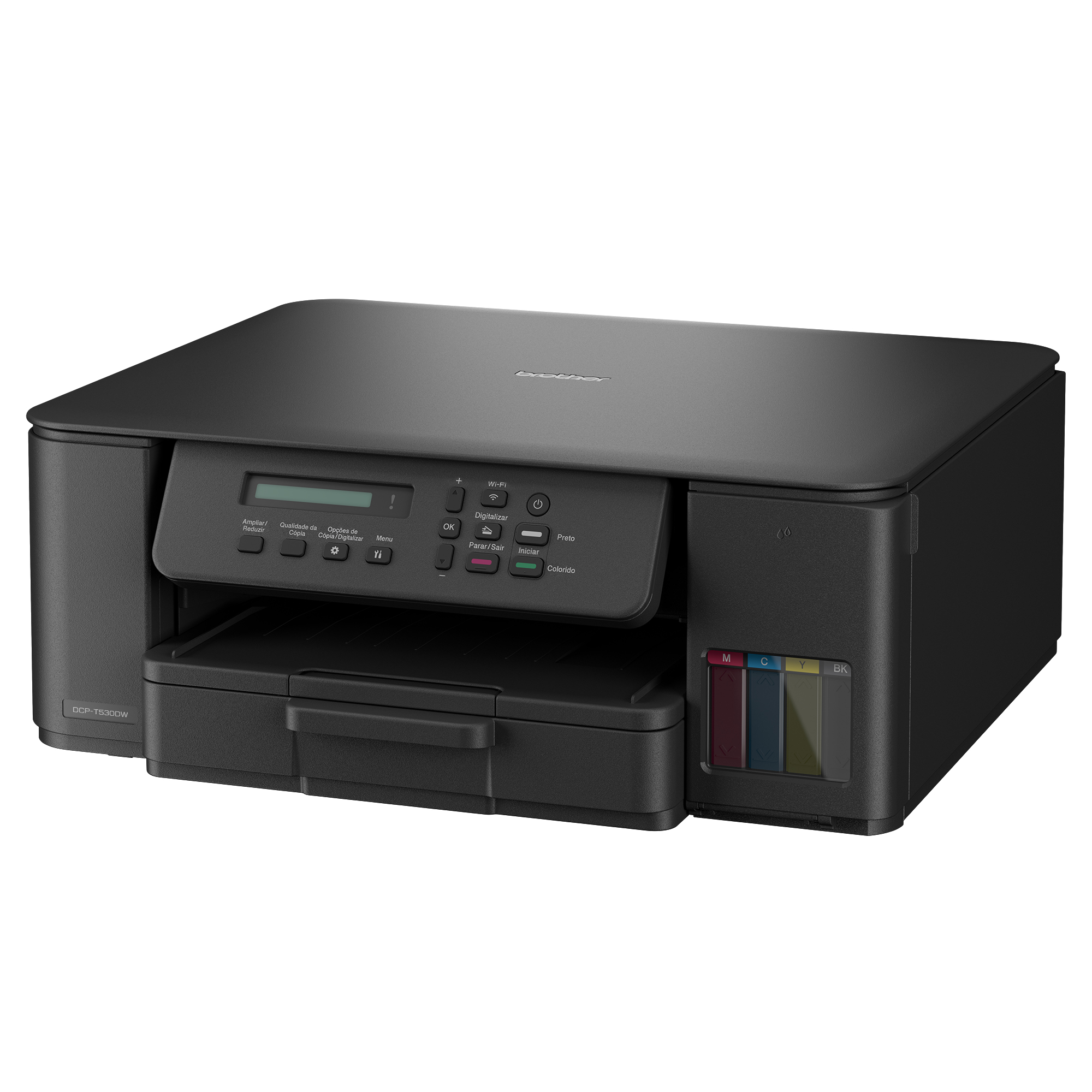 A Multifuncional Tanque de Tinta Colorida DCP-T530DW, da série InkBenefit Tank, torna o trabalho em casa mais produtivo com recursos que visam a eficiência, como a impressão frente e verso automática (duplex) e velocidade de impressão de até 27ppm em preto e 11ppm em cores (A4)‡. Além disso, a função N-em-1 oferece a conveniência de copiar várias páginas em uma única folha, contribuindo para a economia de papel de forma prática. Esta multifuncional possui um display LCD de 1 linha que a torna ainda mais intuitiva e está equipada com uma bandeja frontal coberta para até 150 folhas‡, que ajuda a otimizar o espaço e a proteger o papel contra poeira, além da alimentação manual para até uma folha, que permite manusear diferentes tipos e tamanhos de papel, inclusive envelopes. Ela possui múltiplas opções de conectividade como conexão Wi-Fi® (2.4GHz e 5GHz), Wi-Fi Direct® e USB 2.0, proporcionando flexibilidade aos usuários. Esta multifuncional utiliza as novas garrafas de tinta da Brother com design anti-derramamento, que recarregam rapidamente o tanque de tinta em apenas alguns segundos e evitam a inserção das garrafas de tinta incorretas no compartimento de cada cor. Para garantir um desempenho consistente e resultados de alta qualidade, este equipamento acompanha 2 garrafas de tinta preta, que rendem até 15.000 páginas (aproximadamente 7.500 páginas cada)‡, e e 1 kit de garrafa de tinta colorida (1 ciano, 1 magenta e 1 amarelo), com capacidade para até 5.000 páginas‡ cada. É recomendado o uso exclusivo de suprimentos originais Brother para obter resultados impecáveis e duradouros. Experimente utilizar o aplicativo Brother Mobile Connect, que permite imprimir e digitalizar através do seu dispositivo móvel. ‡